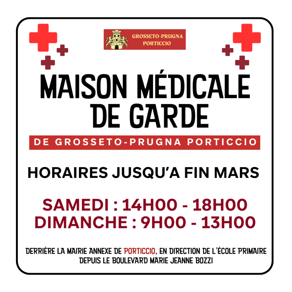 La commune de Grosseto-Prugna-Porticcio s’est dotée d’une Maison Médicale de Garde (MMG) afin de renforcer l’offre de soins de proximité sur le territoire et de répondre aux besoins de la population en dehors des horaires habituels des cabinets médicaux.